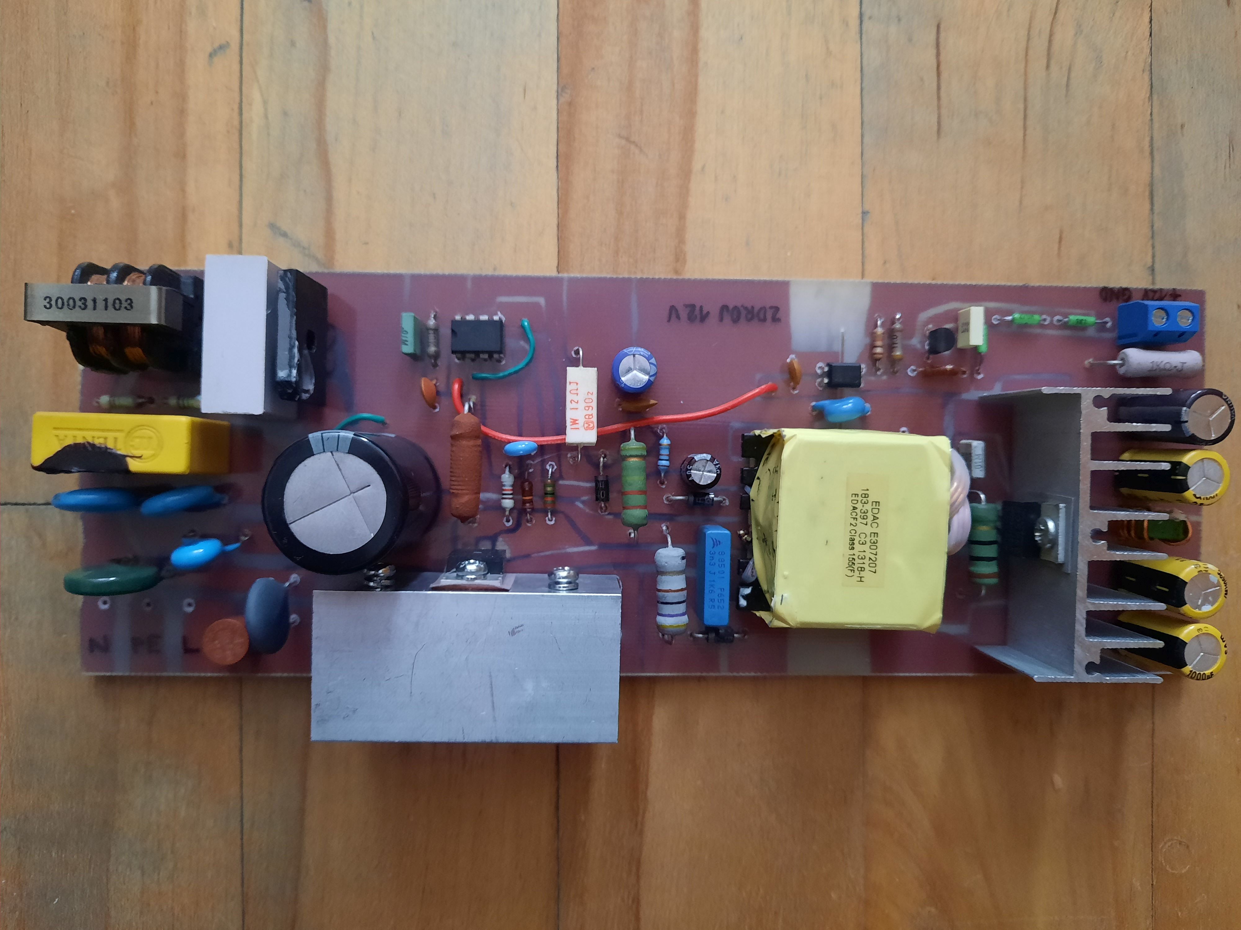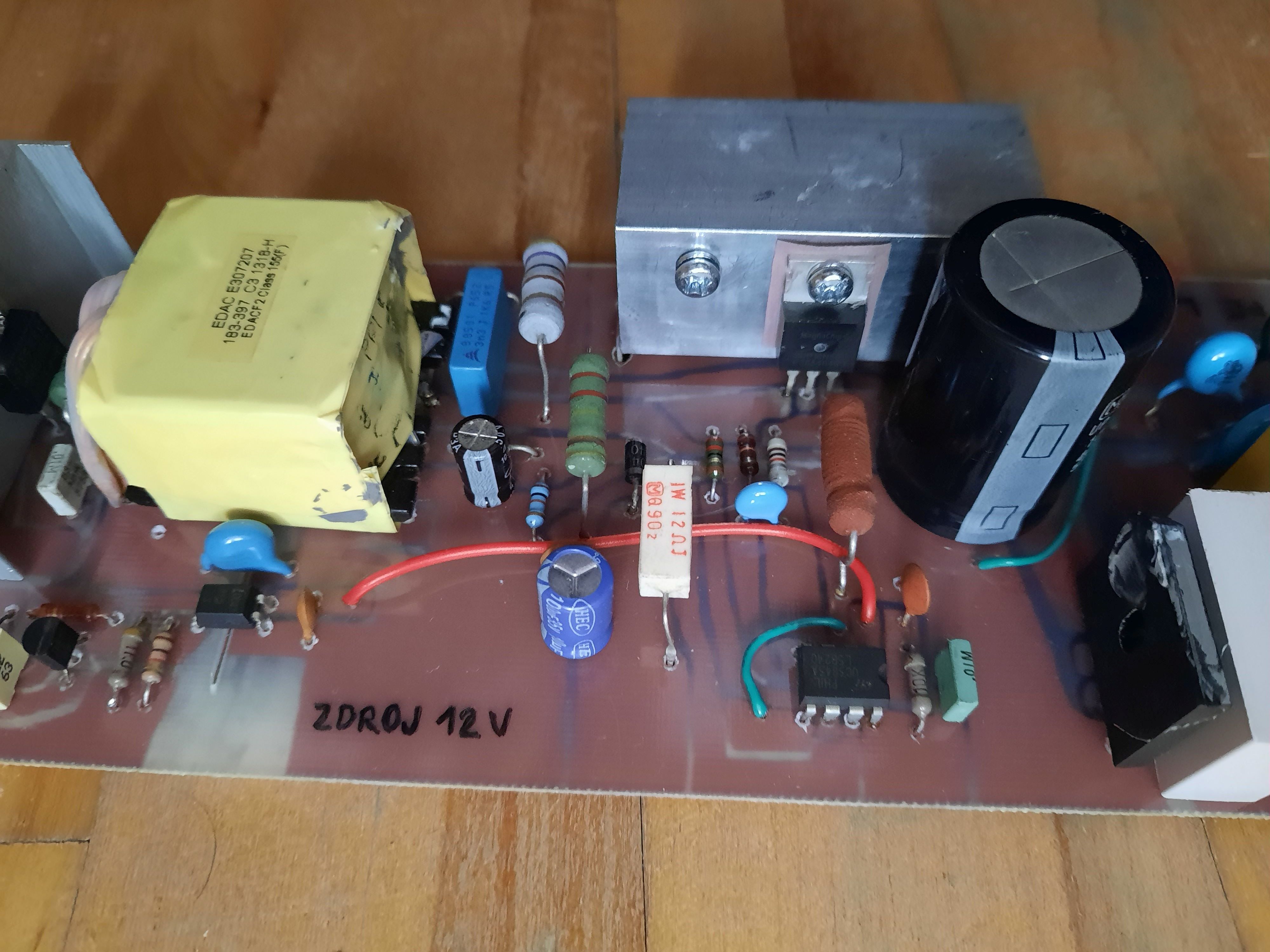 Našiel som v elektroodpade vyhodený plošný spoj zdroja, pravdepodobne to bol zdroj pre notebook. Niektoré súčiastky chýbali. Ako vždy, som ho rozobral "na drobné", ale mal som chuť sa niečo nové naučiť a využiť impulzný transformátor. Viem, že zdroje pre notebooky dávajú zaujímavé prúdy. Výsledkom je táto konštrukcia - zdroj, ktorý dáva 12 V a okolo 50 W (niečo nad 4 A).