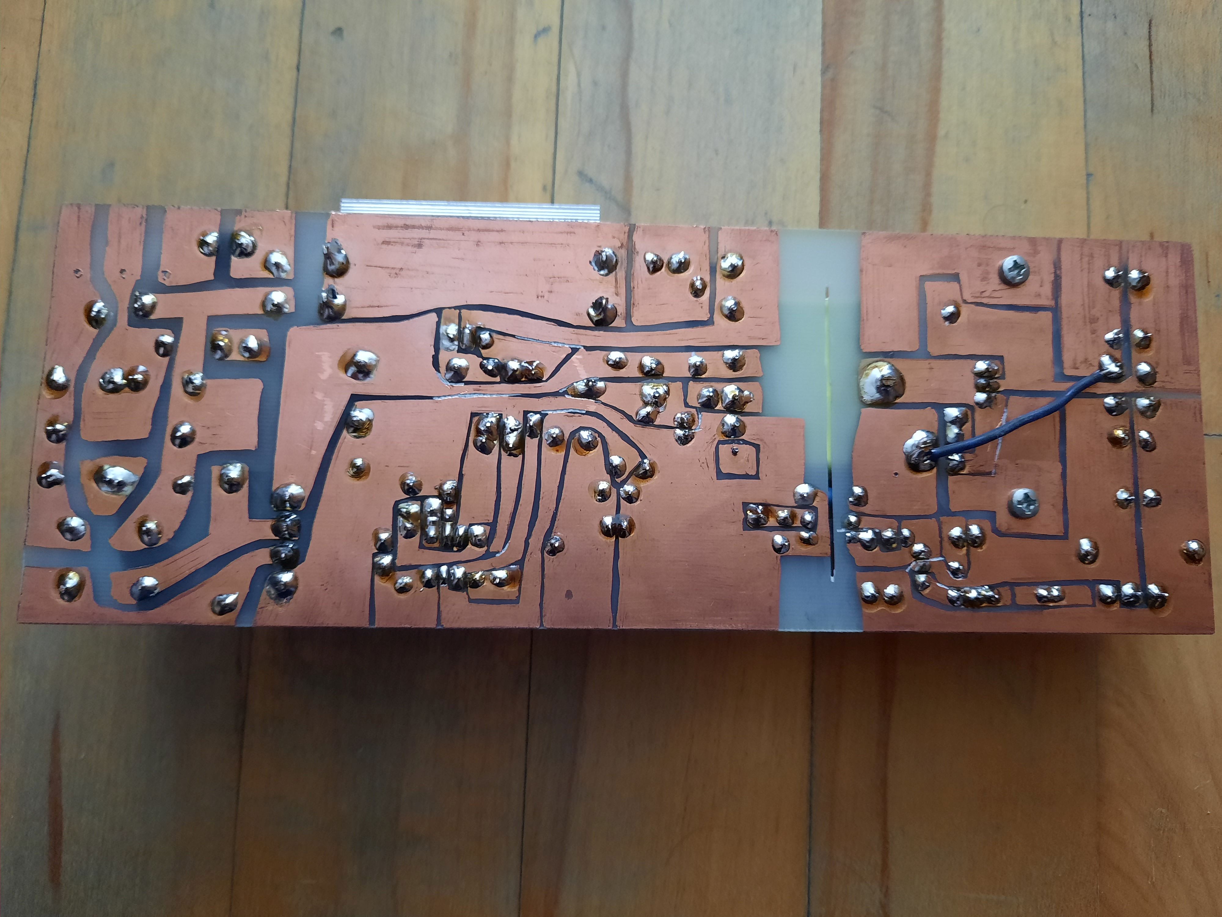 Konštrukciou tohto zdroja som sa opäť niečo naučil, a veľa vecí mi vysvetlila a vypočítala AI. Najprv som experimentoval na univerzálnom plošnom spoji (veroboard), a potom navrhol a zhotovil finálny plošný spoj, ktorý je uverejnený tu. Po jeho osadení zdroj fungoval na prvé zapojenie.