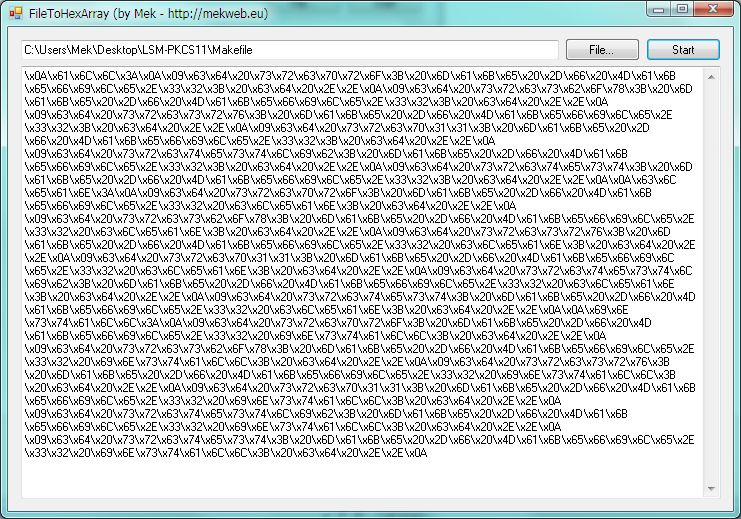 Je to pomôcka pre programátorov, ktorá umožňuje z načítaného súboru vytvoriť reťazec so sekvenciami bajtov v hexa-kóde. Hodí sa, keď treba uviesť obsah súboru ako reťazec. Sám som taký nástroj potreboval pri vývoji diplomovej práce.